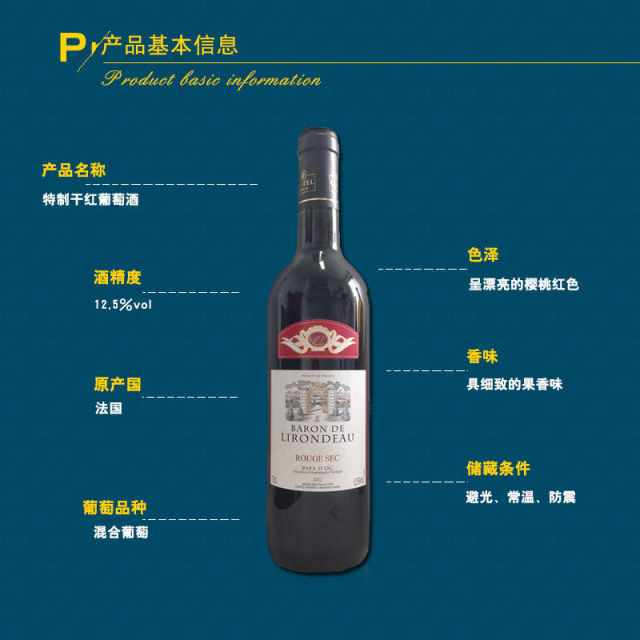 法国利隆多男爵特制干红葡萄酒