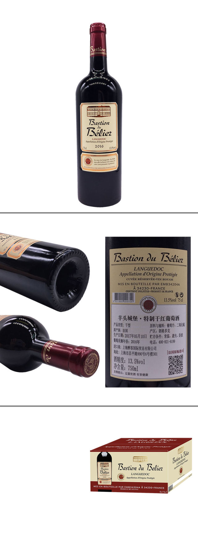 酒精度:13.5%、 规格:750ml*6、 产地:法国、 2瓶起免费配送
