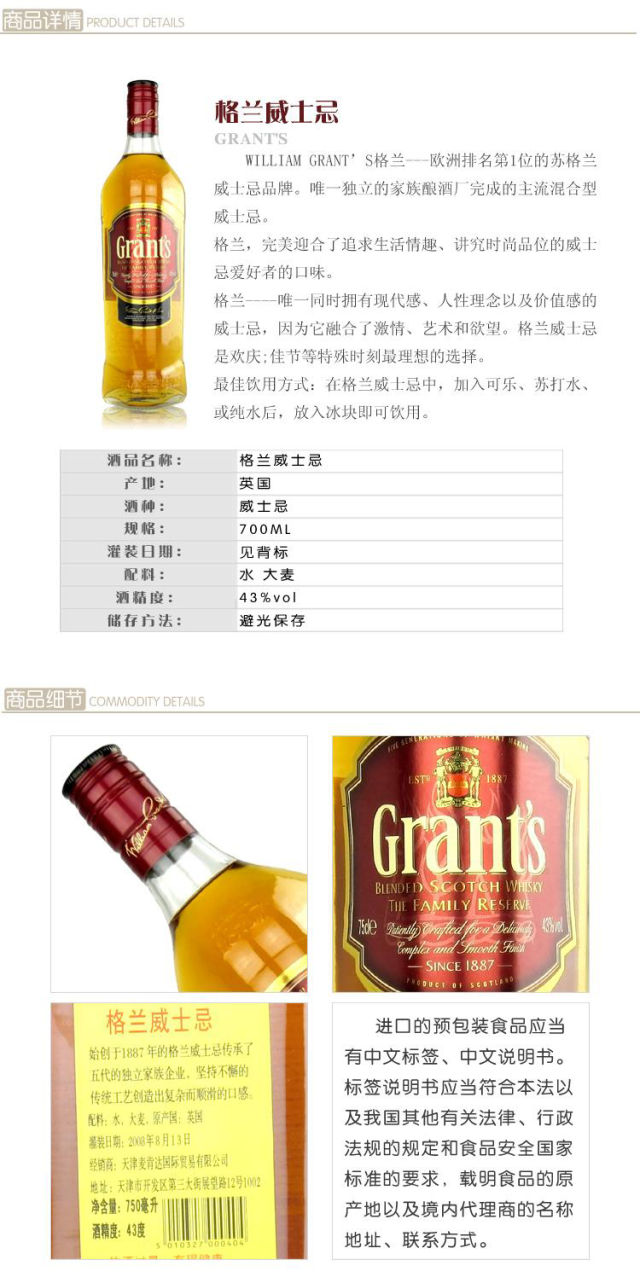 酒精度:≥43%vol、规格:700ml*12、原产:英国、(2瓶起免费配送)、