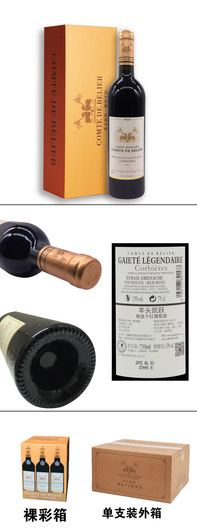 酒精度:13.5%、 规格:750ml*6、 产地:法国、 2瓶起免费配送