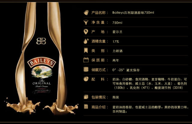 酒精度:≥17%vol、 规格:750ml*6、 产地:爱尔兰、 (2瓶起免费配送)、