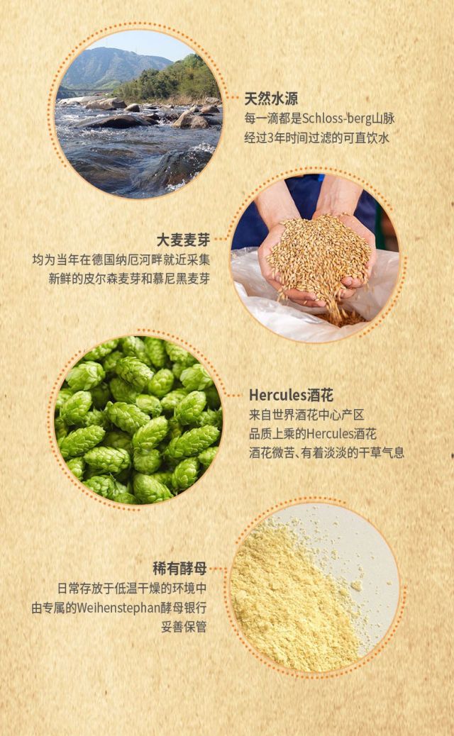 原产国:德国 原料与辅科:水、啤酒麦芽、酒花浸膏 酒精度:4.8%vol 原麦汁浓度:11.2°P 保质期:见正面 贮藏方法:阴凉干燥处存放