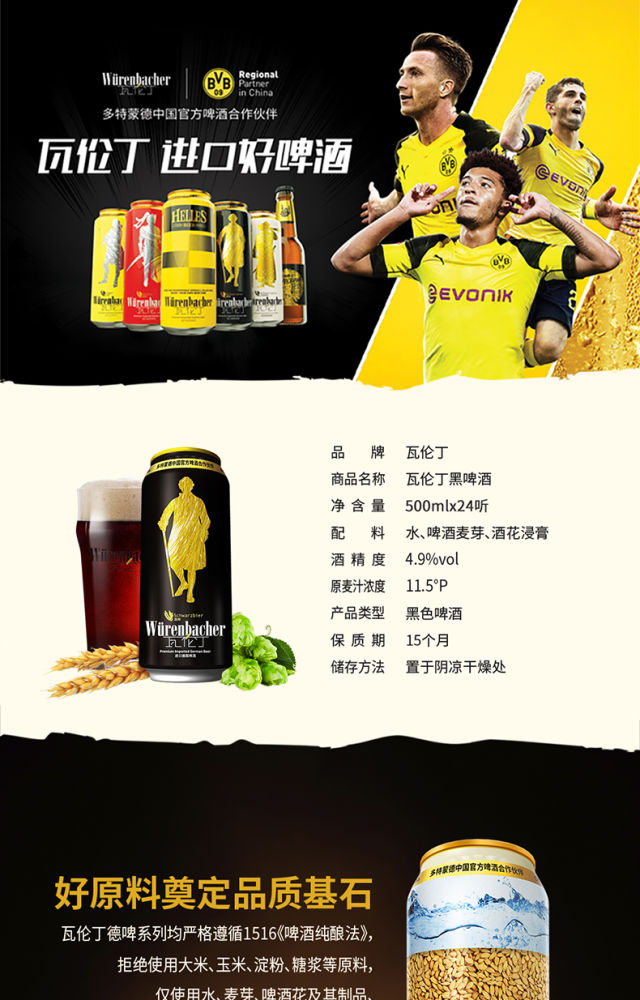 原产国:德国 原料与辅料:水、啤酒麦芽、酒花浸膏、 酒精度:4.9%vol 原麦汁浓度:11.5°P 生产日期:见瓶身(/年/月/日) 保质期:15个月 贮存条件:请置于阴凉干燥处
