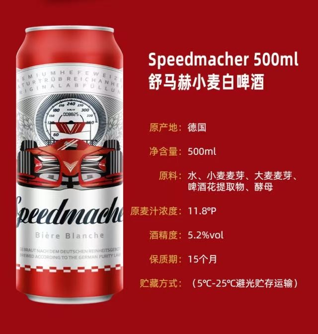 原产地:德国 净含量:500ml 原料:水、小麦麦芽、大麦麦芽、啤酒花提取物、酵母 原麦汁浓度:11.8°P 酒精度:5.2%vol 保质期:15个月 贮藏方式:(5℃-25℃避光贮存运输).