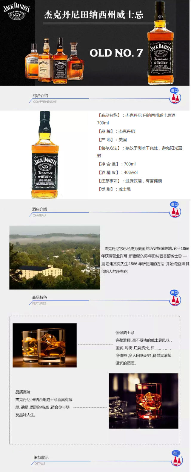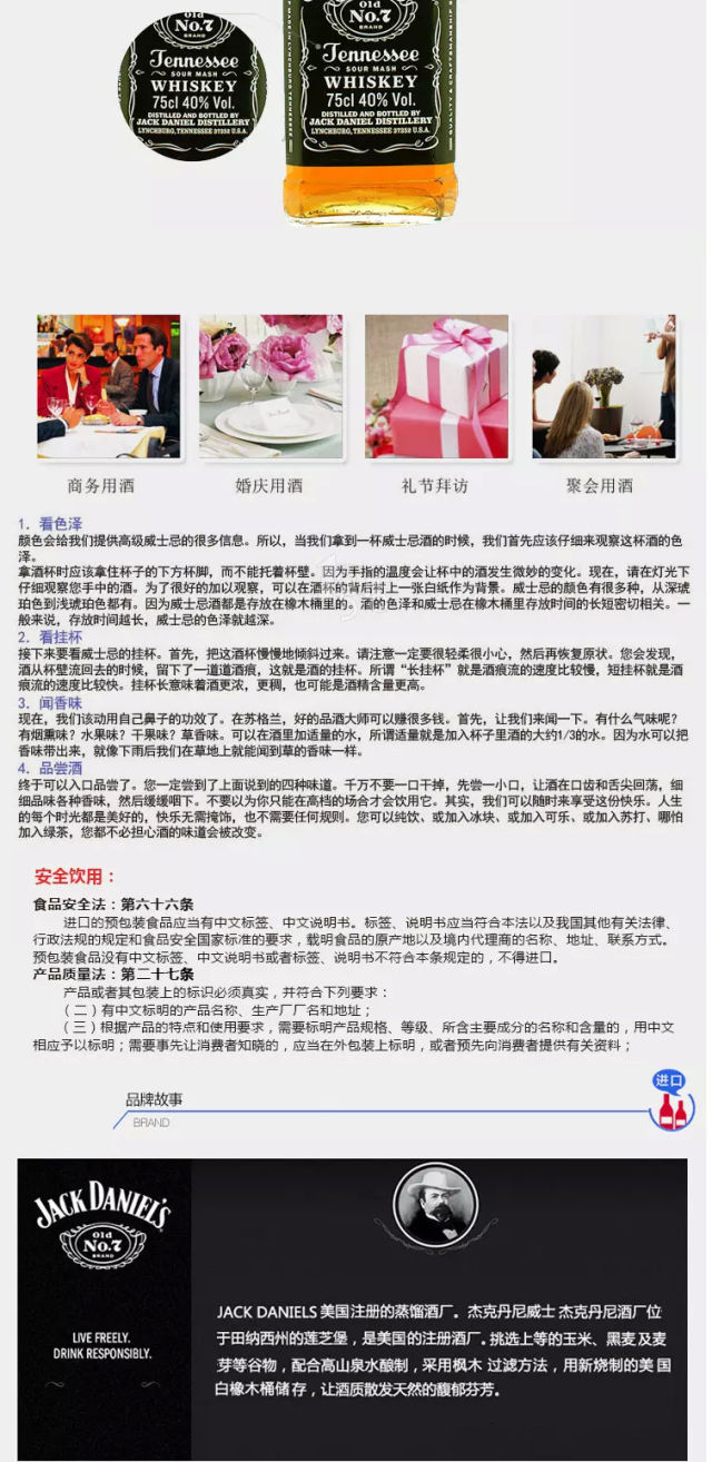 酒精度:≥40%vol、 规格:700ml*6、 产地:美国、 (2瓶起免费配送)、