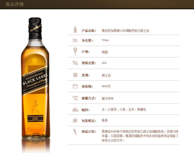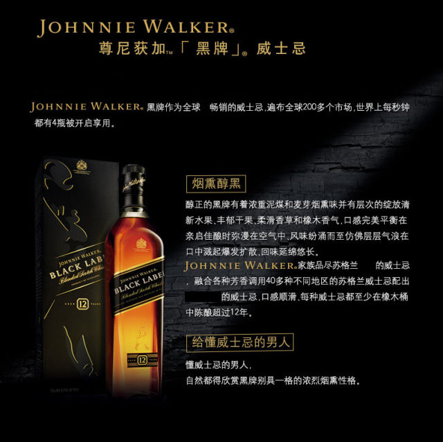 尊尼获加黑牌调配苏格兰威士忌700ml