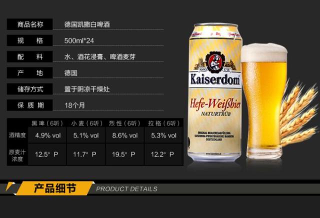 酒精度:4.7%vol、 规格:500ml*24、 产地:德国、 保质期:18个月、 原麦汁浓度:10.6℃