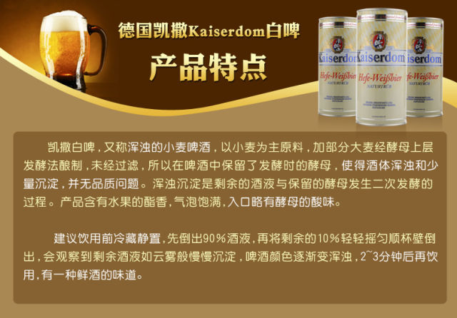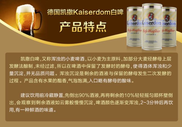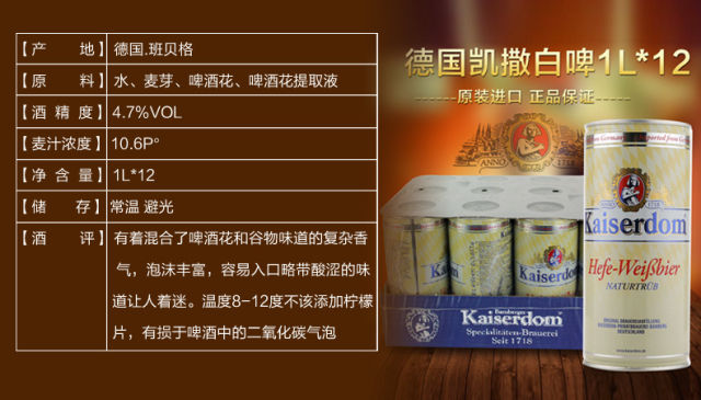 (限时特价)德国进口啤酒Kaiserdom凯撒白啤1L*12罐