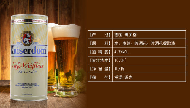 酒精度:4.7%vol、 规格:1L*12、 产地:德国、 保质期:18个月、 原麦汁浓度:10.6℃