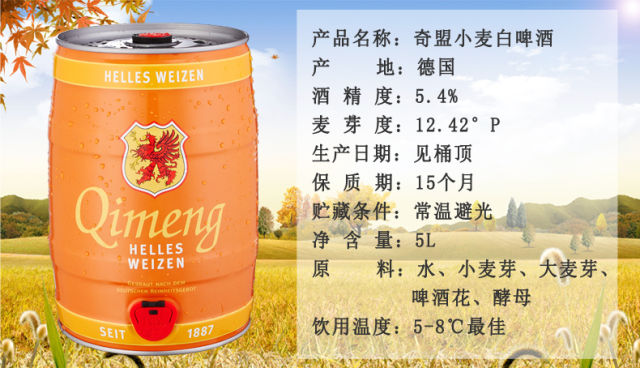 酒精度:5.4%vol、 规格:5L*2、 产地:德国、 保质期:12个月、