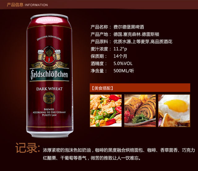 费尔德堡小麦黑啤500ml