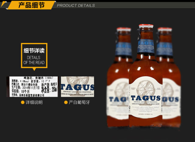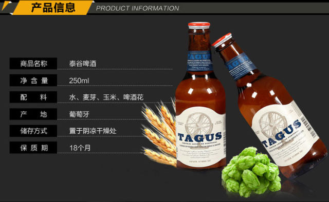 酒精度:4.8%vol、 规格:250ml*24、 产地:葡萄牙、 保质期:18个月、