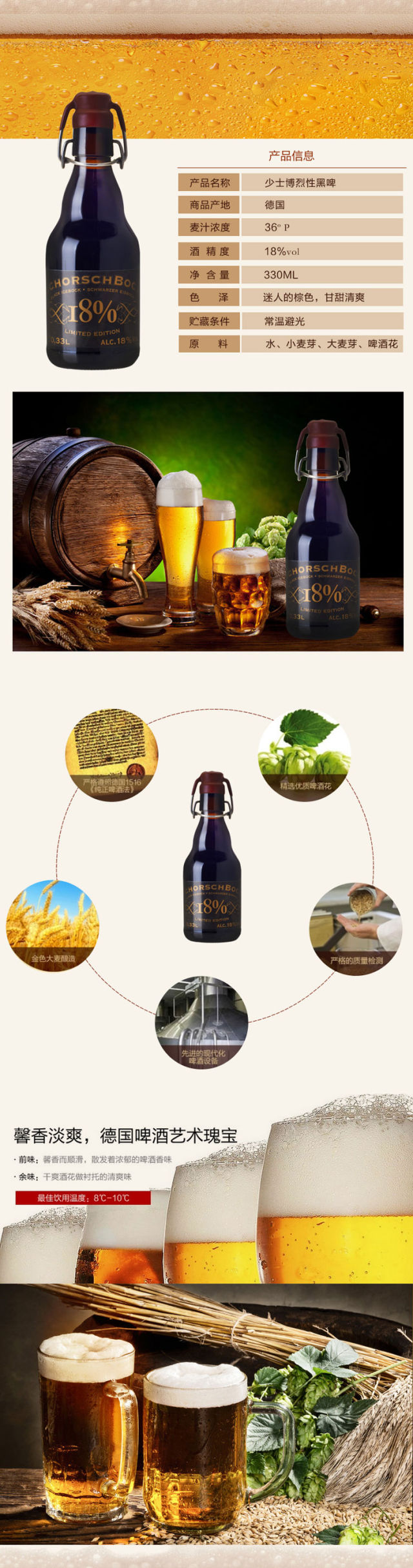 酒精度:18%vol、 规格:330ml、 产地:德国、 保质期:无期限、