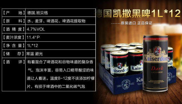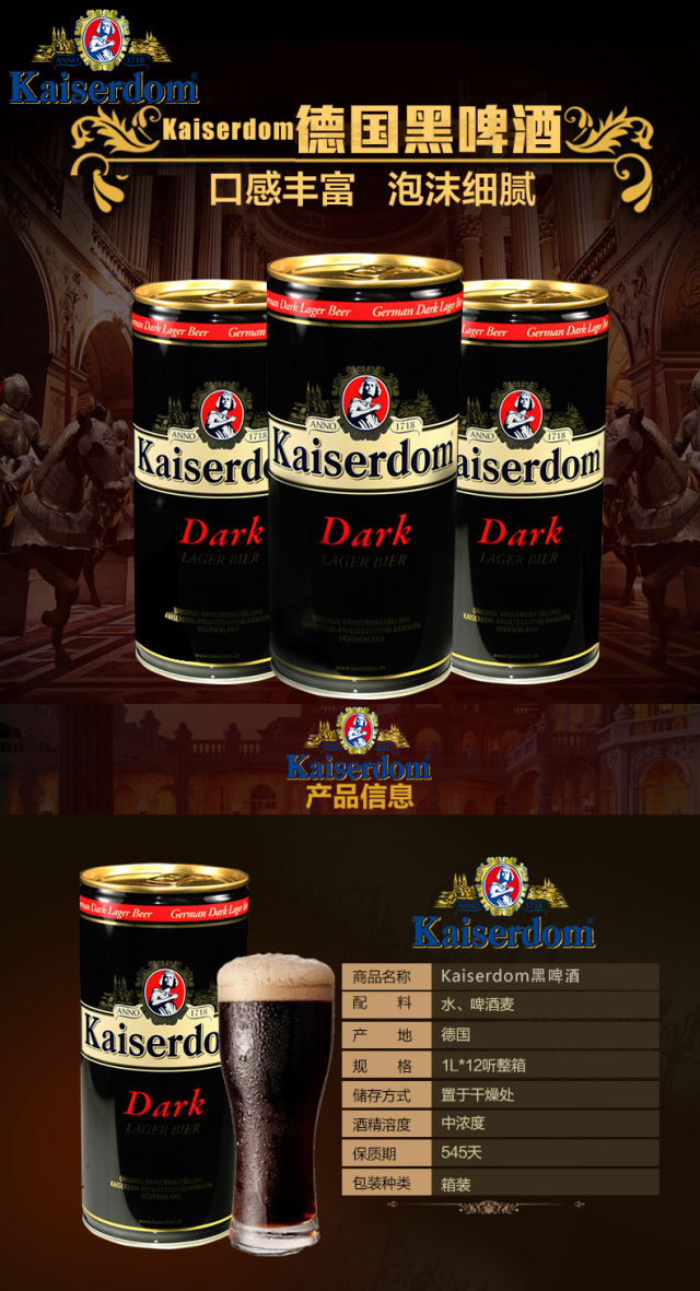 德国进口啤酒Kaiserdom凯撒黑啤1L*12罐