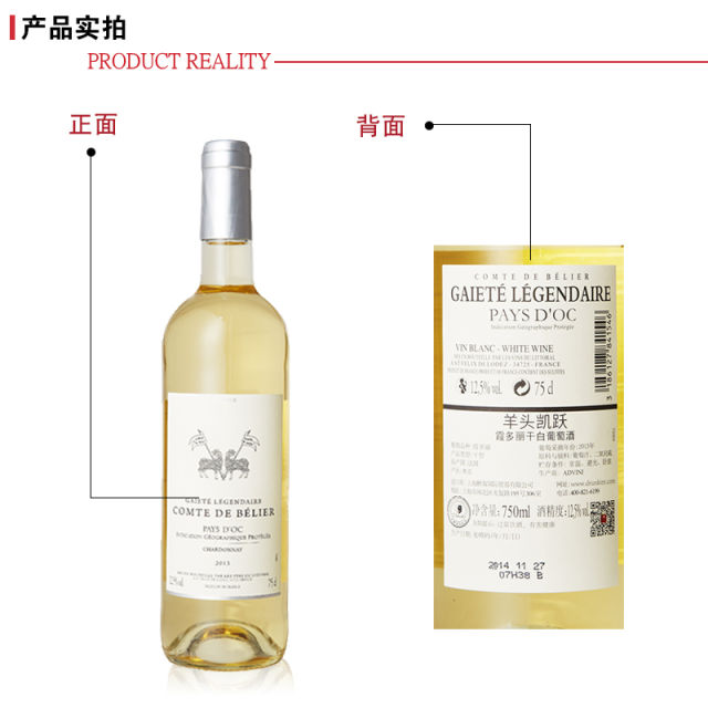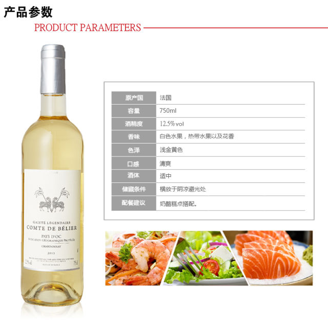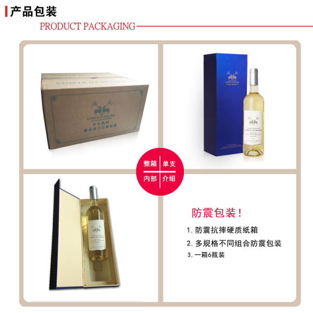 酒精度:12.5%、 规格:750ml*6、 产地:法国、 6瓶起免费配送