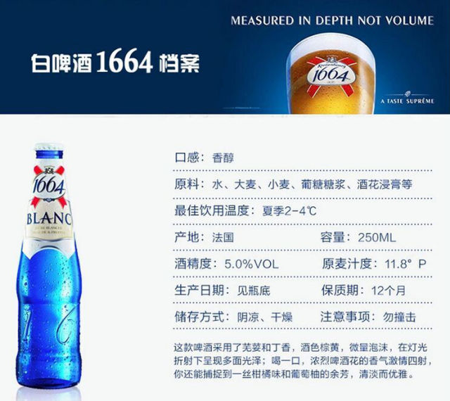 酒精度:5%vol、 规格:250ml*24、 产地:法国、 保质期:12个月、 原麦汁浓度:11.8℃