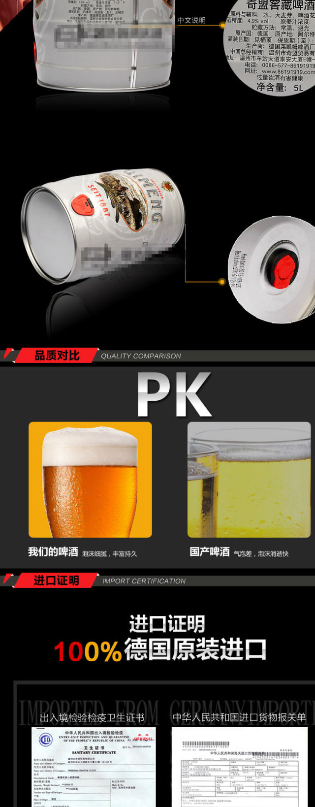 酒精度:4.9%vol、 规格:5L*2、 产地:德国、 保质期:15个月、 (两桶起免费配送)