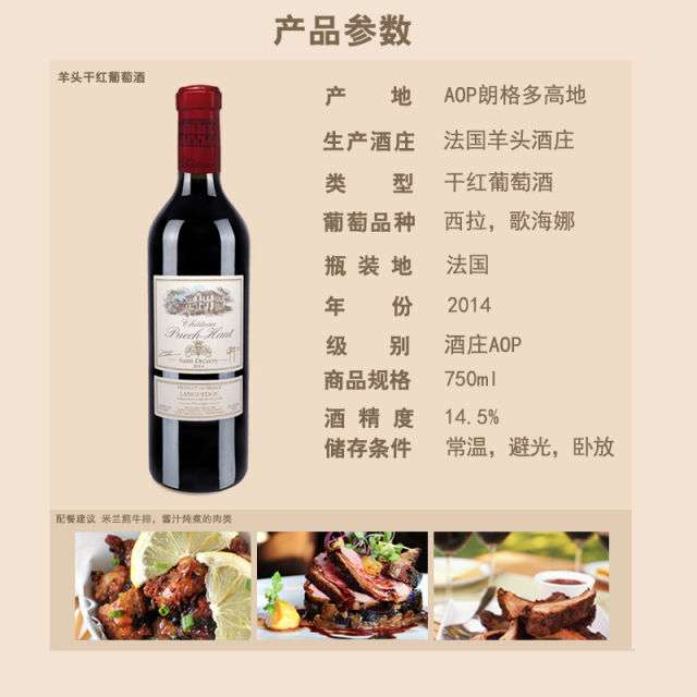 酒精度:14.5%、 规格:750ml*6、 产地:法国、 2瓶起免费配送