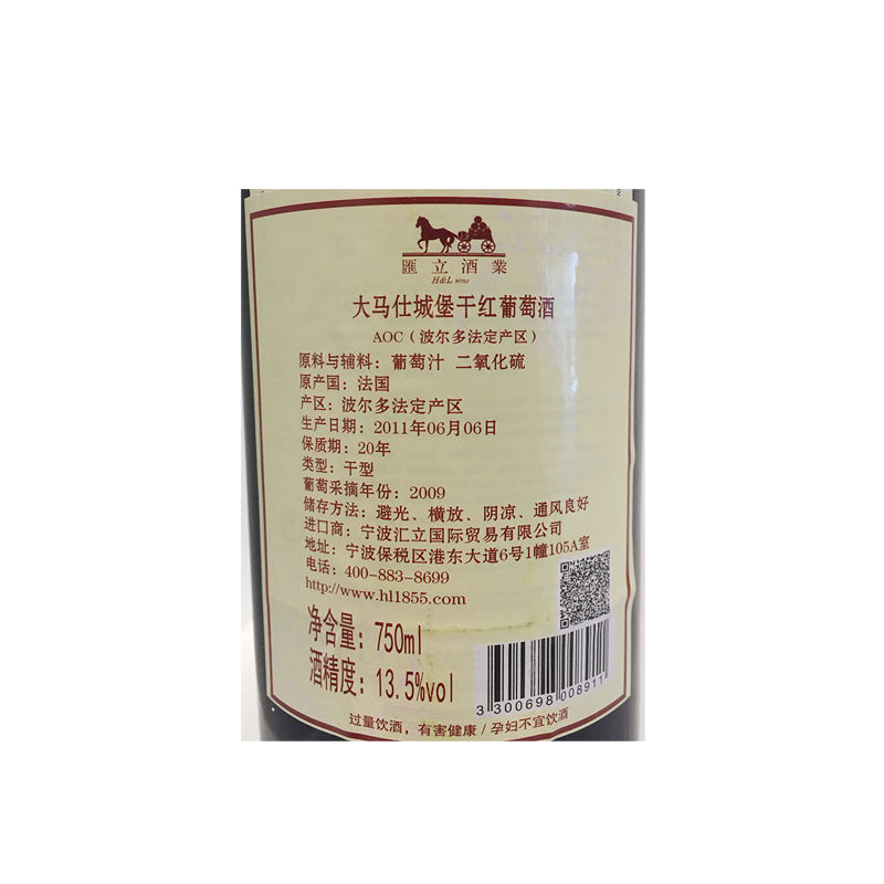 酒精度:13.5%、 规格:750ml*6、 产地:法国、 等级:AOC、 2瓶免配送