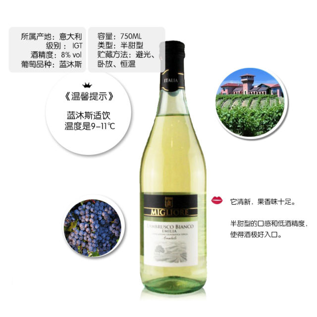 酒精度:8%、 规格:750ml*6、 产地:意大利、 年份:2024 2瓶起免费配送