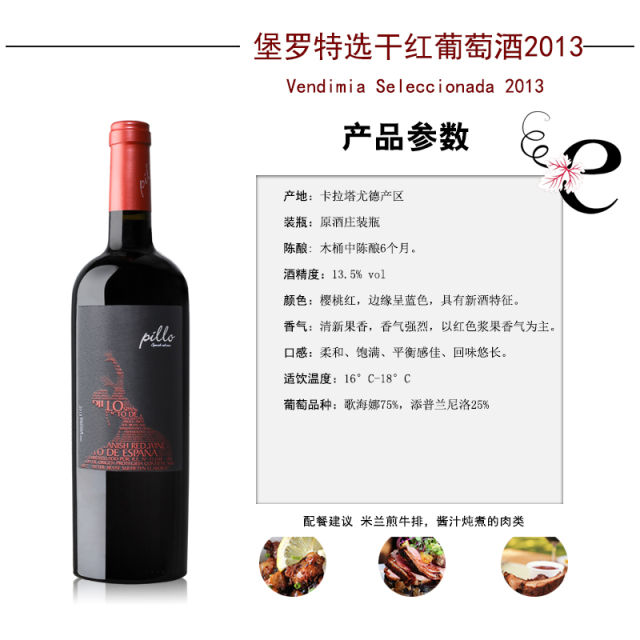 酒精度:13.5%、 规格:750ml*6、 产地:西班牙、 2瓶起免费配送