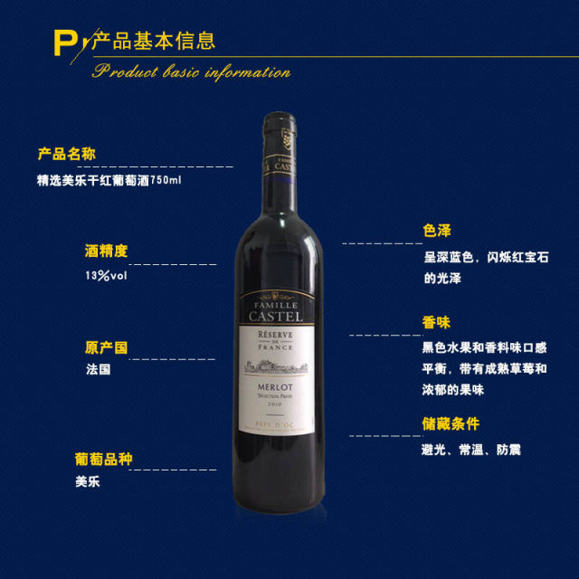 酒精度:13%、 规格:750ml*6、 产地:法国、 2瓶起免费配送